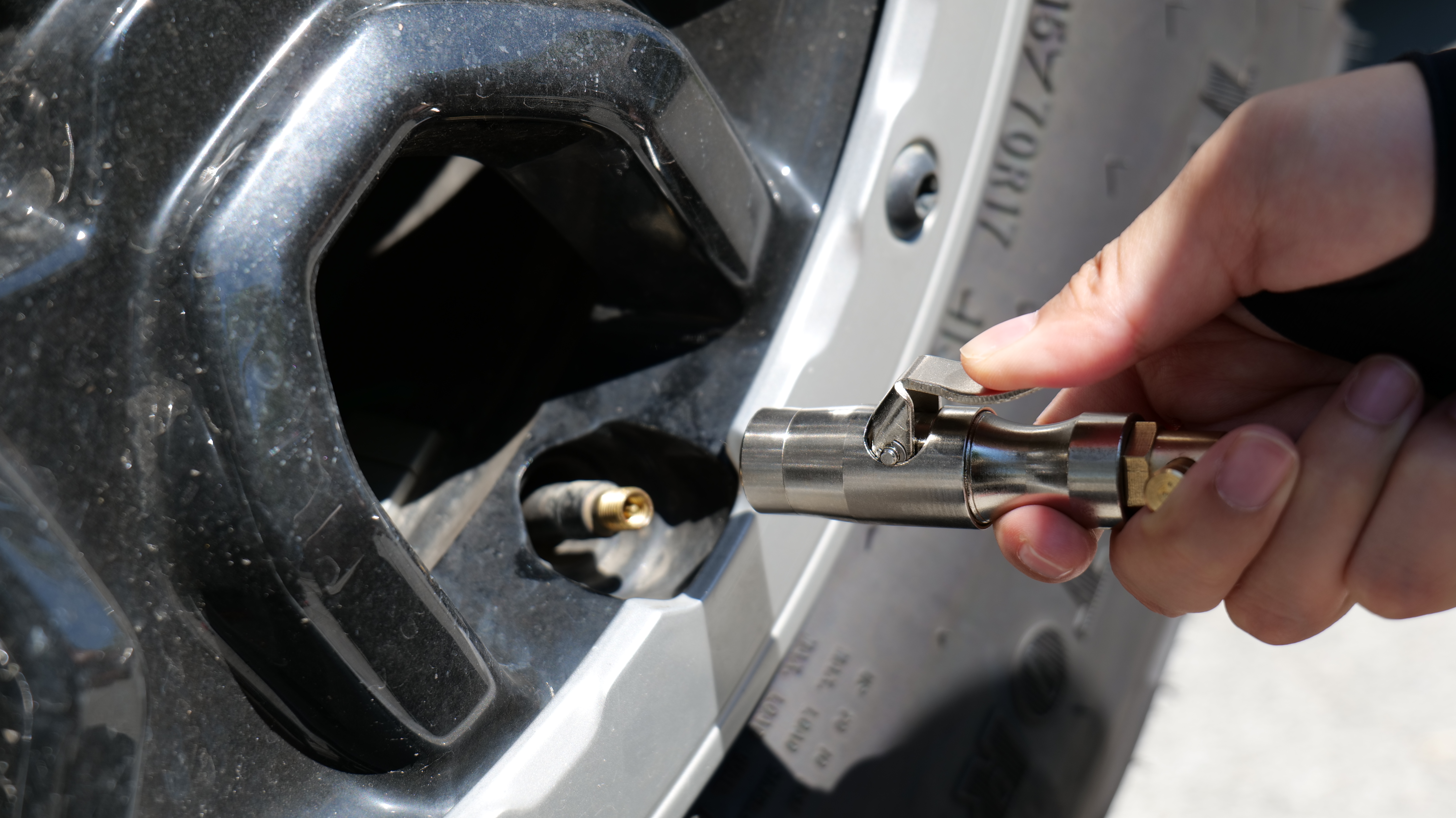 • One-click to preset target pressure. Automatically stop at ±1 PSI accuracy. Flashing light and audible buzzer alert upon completion.